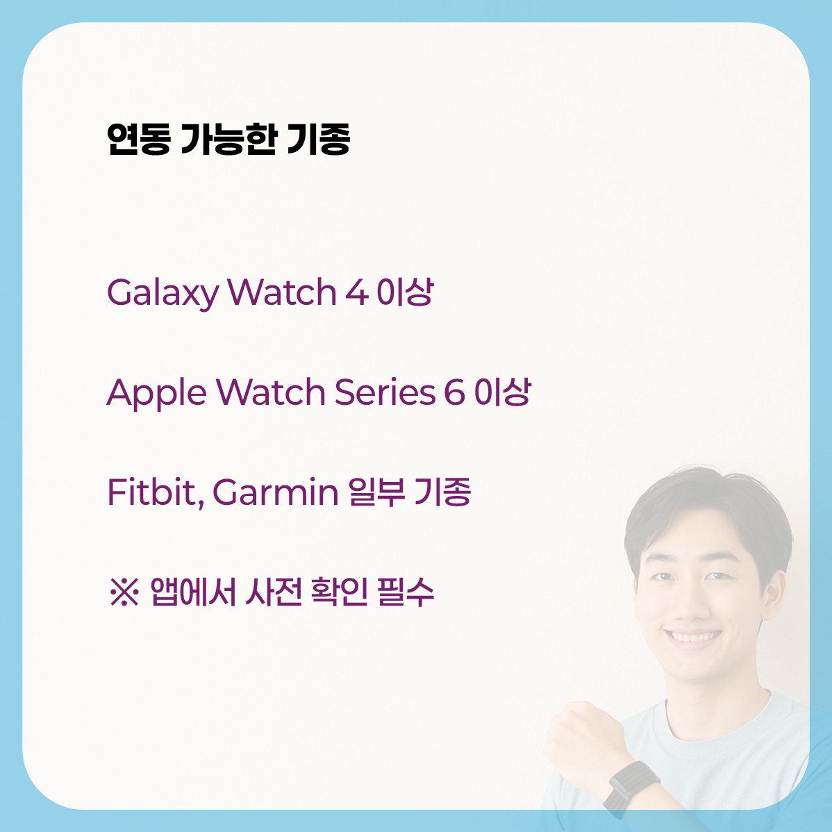 연동 전 반드시 손목닥터9988 공식앱에서 호환 여부를 확인해야 하며, 기종은 바뀔 수 있으므로 신청 전 재확인이 필수다.