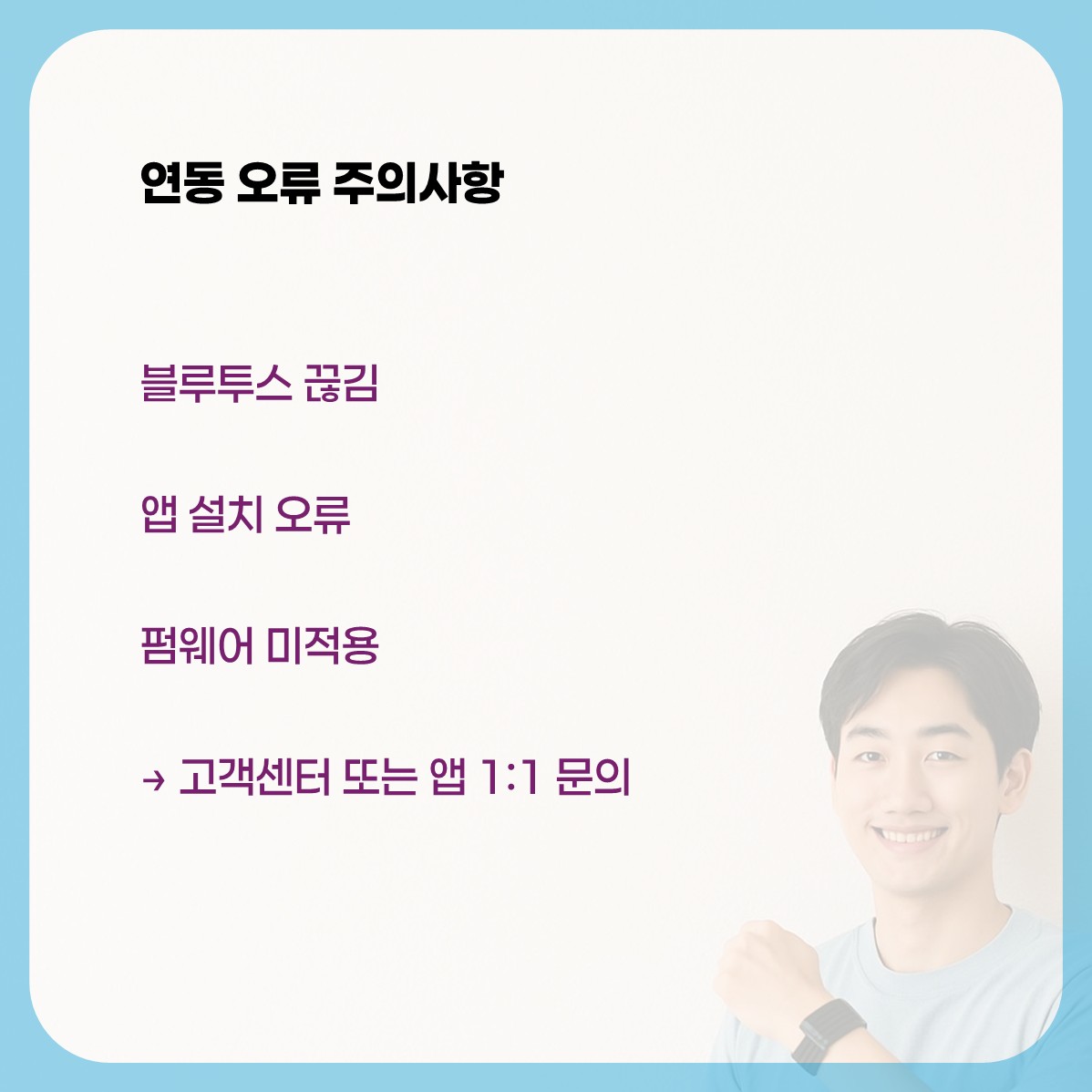 - ✅ 앱과 블루투스 연동 오류 시 재설치 및 고객센터 문의